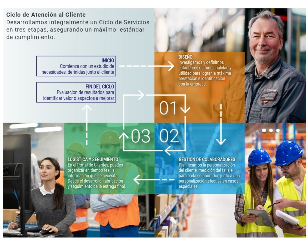 Tenemos un plan de trabajo personalizado por cliente, evaluamos y medimos el tallaje por cada uno de los colaboradores, junto a la personalización efectiva en casos especiales.